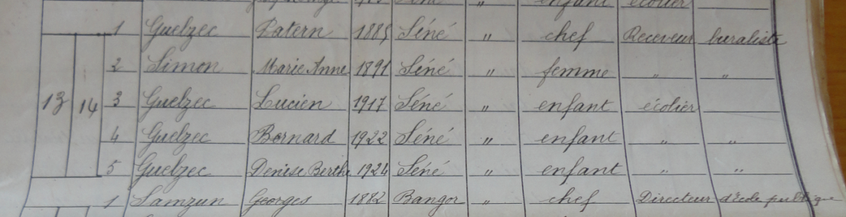 Le dénombrement de 1841 ne mentionne pas de "secrétaire de mairie". En existe-t-il un? Vit-il sur Séné?