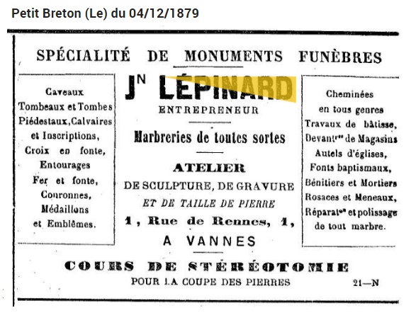 Propriétaires à Carentoir, qu'elles raisons poussèrent les Rondouin à venir s'établir à Séné pour occuper l'emploi de buraliste. Arrivés à Séné, les Rondouin furent meurtris par la mort de leur fille, Mathurine en 1881, à l'âge de 23 ans, puis par celle de leur fils Louis Victor à l'âge de 18 ans en 1882. Le père décéda en 1883. La famille choisit l'entreprise Lepinard, marbrier récemment installé à Vannes pour réaliser les sarcophages des enfants et ensuite du père.
