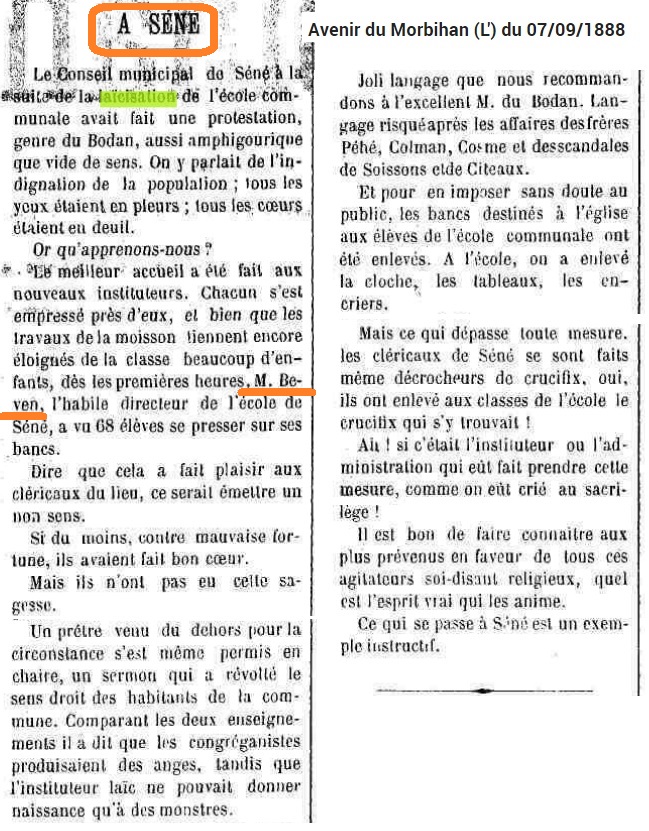 Cette coupure de presse de 1889 rend compte des délibération du Conseil Général du Morbihan. Un poste de facteur rural est créé pour Séné comme Arradon.