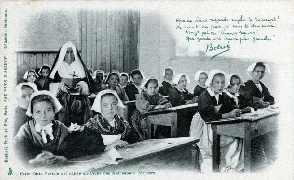 La distribution du courrier ne se fait plus à pied par le facteur rural; la bicyclette permet l'embauche de femmes en tant que factrices comme l'illustre cette vieille photographie où deux Sinagotes enfourchent leur vélo pour répartir le courrier, peut-être Mme Le Lan épouse Lotodé et Fernande Noblanc épouse Morio.