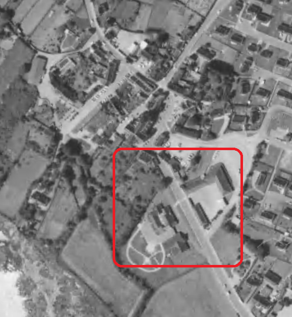 Les cuisines sont installées sur la champs en VERT derrière la rangée de maisons. La grande maison avec les 2 cheminées n'est autres que la boulangerie de Cariel.