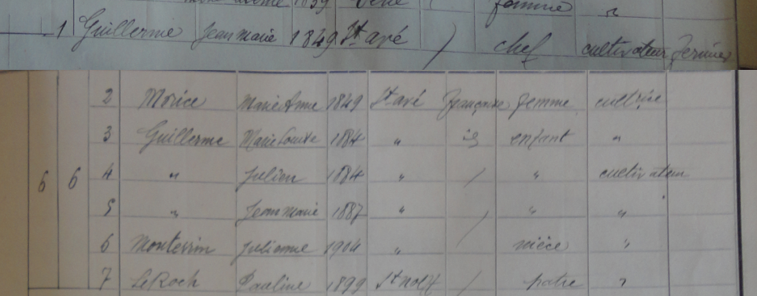 Le dénombrement de 1906 nous précise que son père Julien Marie et son oncle Jean François sont tous les deux avec leur famille respective cultivateurs fermiers à Saint-Léonard.