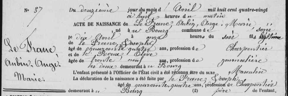 Quels rapport entretenait-il avec ses parents ? Etaient-ils décédés avant 1914 et s'est-il domicilié chez sa grand-mère Le Franc ?