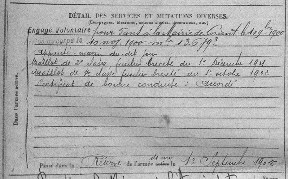 Rengagé pour 2 ans le 13 octobre 1910. Rengagé pour 2 ans le 11 octobre 1912
