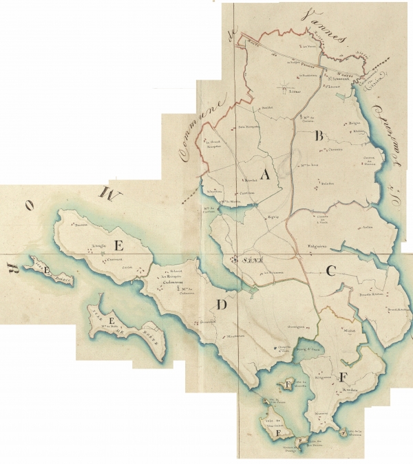Sur cette car de 1810 est mentionné le lieu-dit La Poussinière, les casernes des douanes à Kerbiscon et aux Quatre Vents.