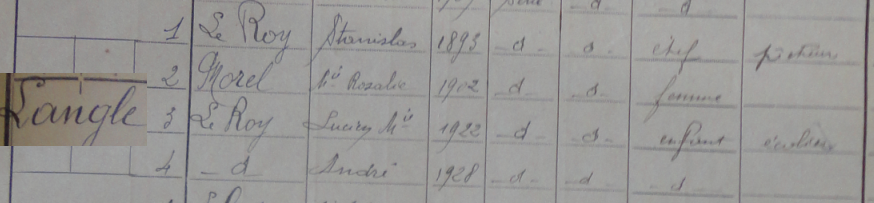 André LEROY nait au village de Langle. Son père Stanislas [28/4/1893-1/2/1966] est marin pêcheur et sa mère , Marie Rosalie MOREL [21/6/1902-27/4/1977] estpêcheuse. La famille est pointée lors du dénombrmeent de 1931.