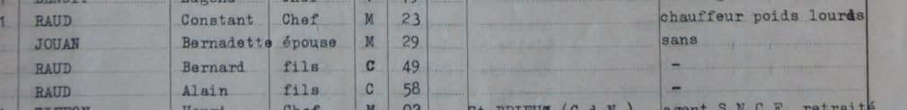 Constant RAUD [13/12/1923-26/11/2005] nait au village de Kérarden. Son père est marin et sa mère ménagère. La famille est pointée lors du dénombrement de 1926, 1931 et 1936. Constant est le frère de Emmanuel, résistant au sein des FNFL.