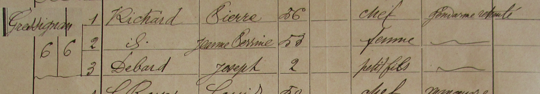 Lors du dénombrement de 1901, on retrouve bien le jeune Eugène DEBARD (l'officer fait une erreur et lui attribue le nom de son père) vivant chez ses grands-parents à Cressignan.